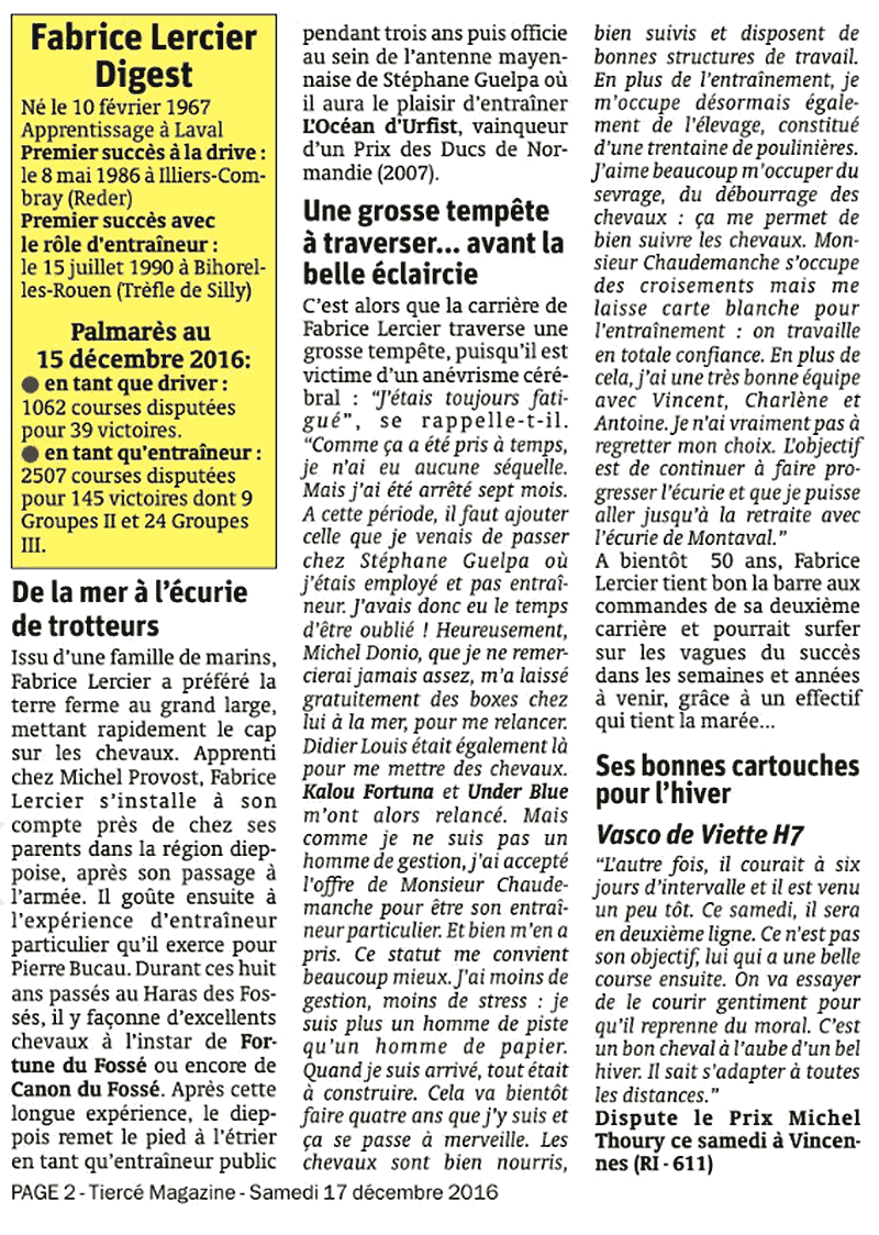 Lire l’interview de Fabrice Lercier par Tiercé Magazine